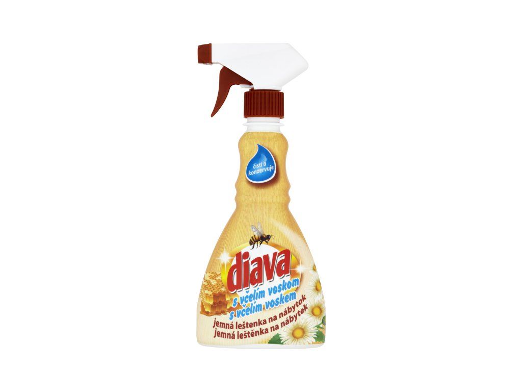 Diava sprej s obsahem včelího vosku je čistící a leštící přípravek na všechny druhy nábytku. Na nábytku vytváří ochranný film a vyživuje dřevo. Vhodný na parkety, laminátovou a PVC podlahu a podlahu ze dřeva a mramoru