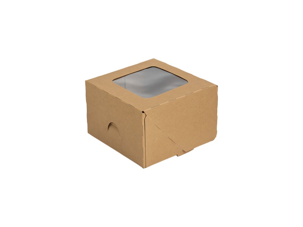 Tato kraftová krabička na pečivo o rozměrech 13x13x7 cm s okénkem je praktickým řešením pro cukrárny, pekárny, kavárny a cateringové společnosti. Je ideální pro balení dortů, dezertů, muffinů a dalších cukrářských výrobků a díky průhlednému okénku umožňuje estetickou prezentaci.