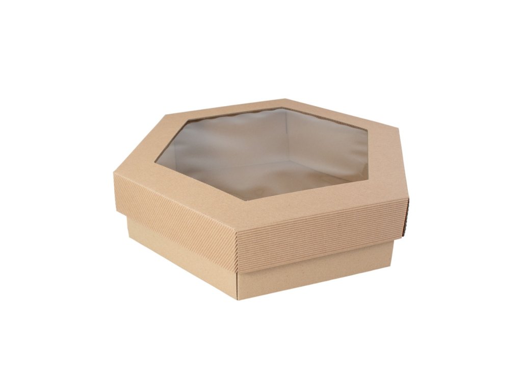 - Materiál víka: Čtyřvrstvá vlnitá lepenka + průhledné PET okénko