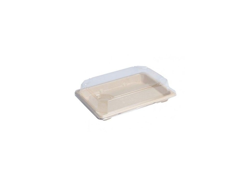 Tácek na SUSHI z cukrové třtiny s víkem FirstPack 165/115/15mm 50ks
