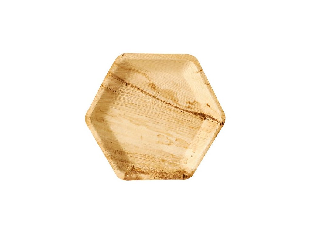 Talíř šestiúhelný vyrobený z palmových listů je ideální pro servírování jídla na všech typech akcí