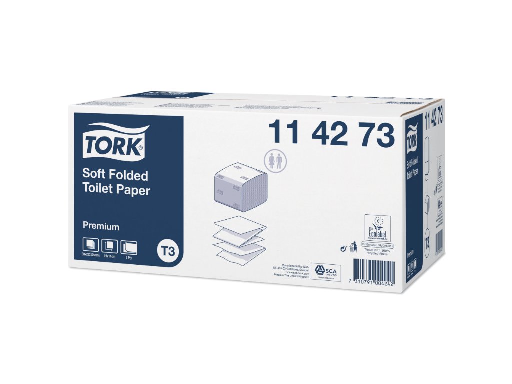 Systém Tork Folded toaletní papír nabízí hygienické dávkování po jednotlivých útržcích, které omezuje plýtvání a snižuje náklady na údržbu. Tork Folded Soft toaletní papír Premium nabízí nejen prvotřídní vzhled a pocit na dotek, ale také skvělý výkon. Tento systém je ideální pro provozovny s nízkou až střední návštěvností, zejména ve zdravotnictví a v sektoru hotelnictví, restaurací a cateringu.