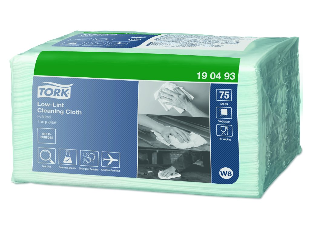 TORK 190493 – Low–Lint čisticí utěrka W8, tyrkysová, netkaná text., 75útr. - Karton