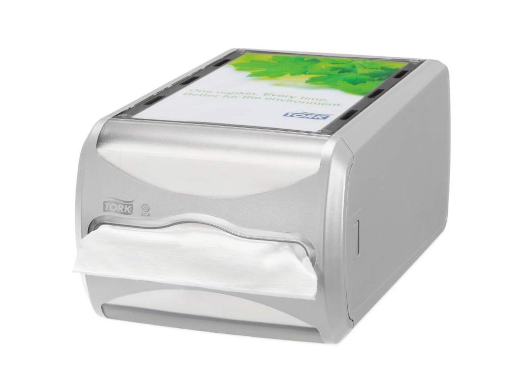 Tork Xpressnap® pultový zásobník na ubrousky je ideální pro restaurace s omezenou obsluhou, které nabízejí ubrousky na jednom centrálním místě. Tento moderní zásobník dávkuje ubrousky po jednom, zvyšuje hygienu a v porovnání s tradičními systémy dávkování ubrousků ze zásobníků snižuje spotřebu minimálně o 25 %.