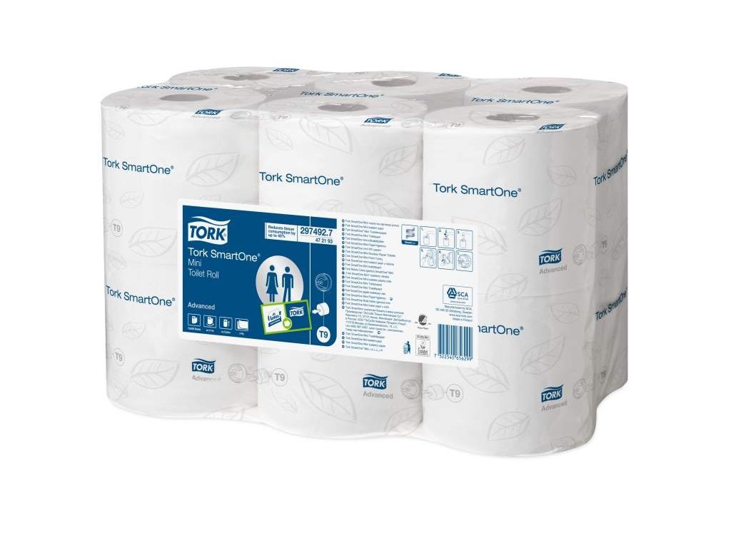 Systém Tork SmartOne Mini toaletní papír jedinečným způsobem nabízí pokaždé jeden hygienický útržek a v porovnání s tradičními zásobníky na jumbo role snižuje spotřebu až o 40 %. Každá role tak vystačí pro více návštěvníků. Tork SmartOne Mini role s vysokou kapacitou jsou vhodné pro náročné toalety a umývárny s nízkou až střední návštěvností podle toho, jaký Tork SmartOne Mini zásobník si vyberete.