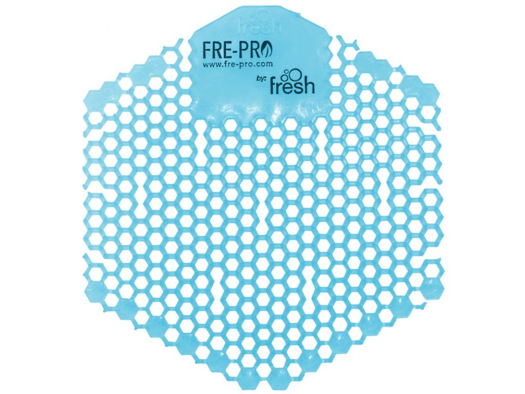 Oboustranné vonné gelové sítko do pisoáru Wave 3D je součástí řady originálních produktů FRE-PRO. Unikátní šestiúhelníkový tvar se speciálně řešenými otvory umožňuje náhled do odpadových cest, redukuje rozstřikování moči, udržuje pisoár v čistotě a redukuje čas potřebný na očistu až o polovinu.